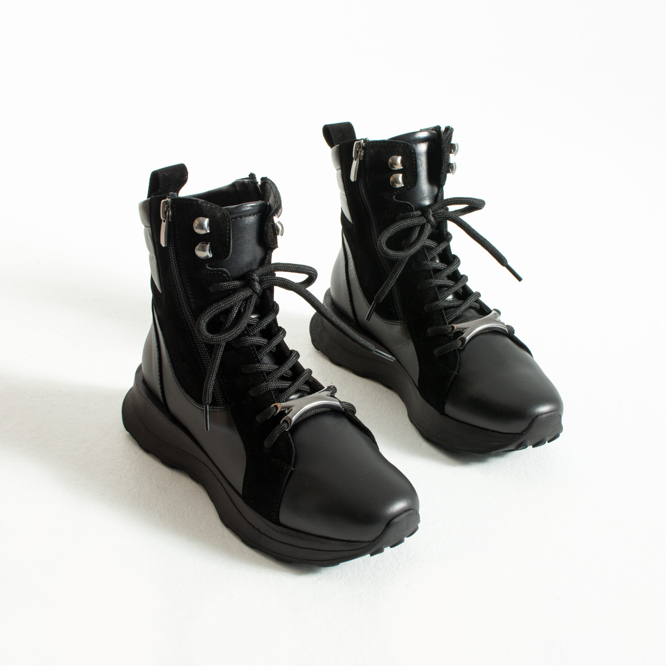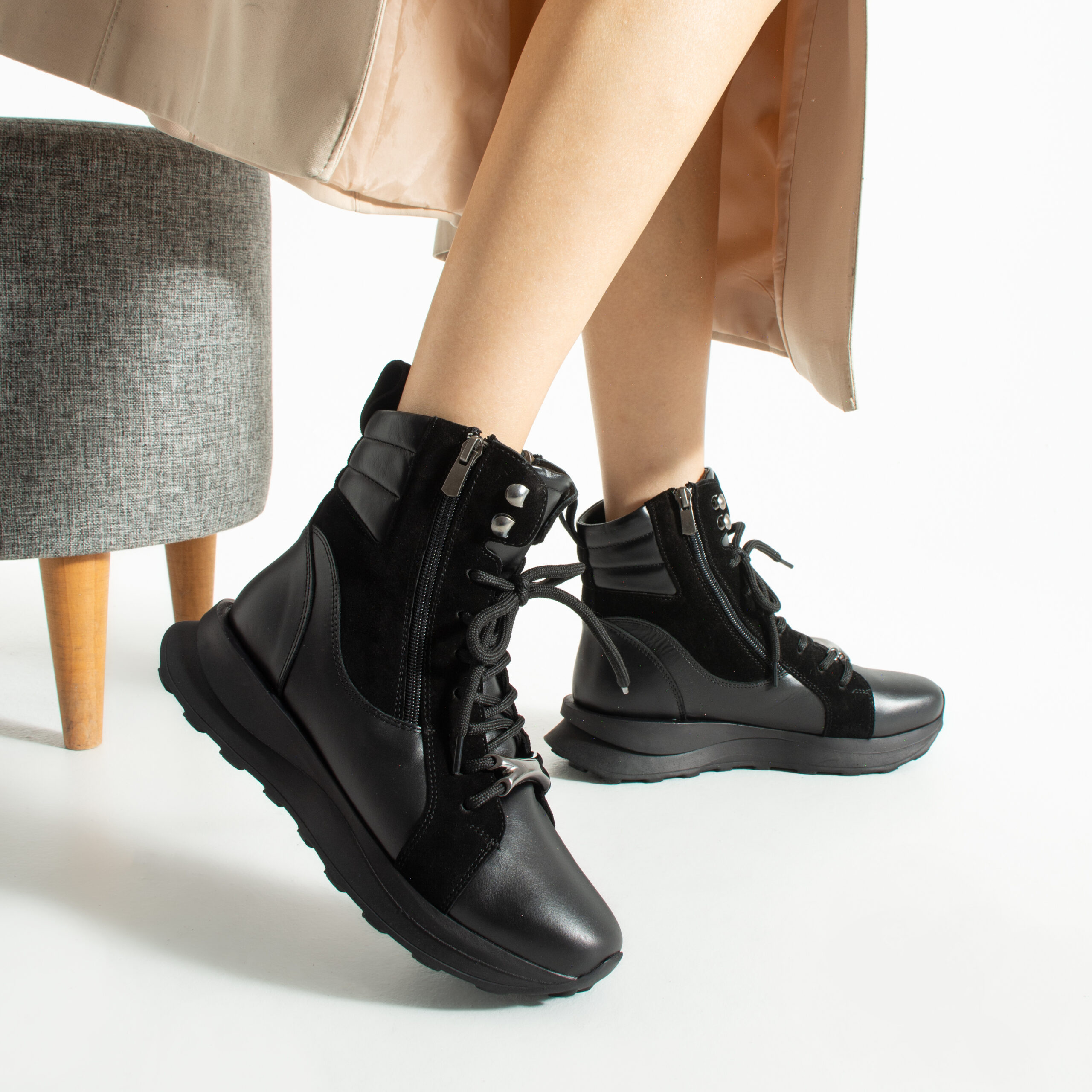 Дамски черни спортни боти от естествена кожа и велур Darius
